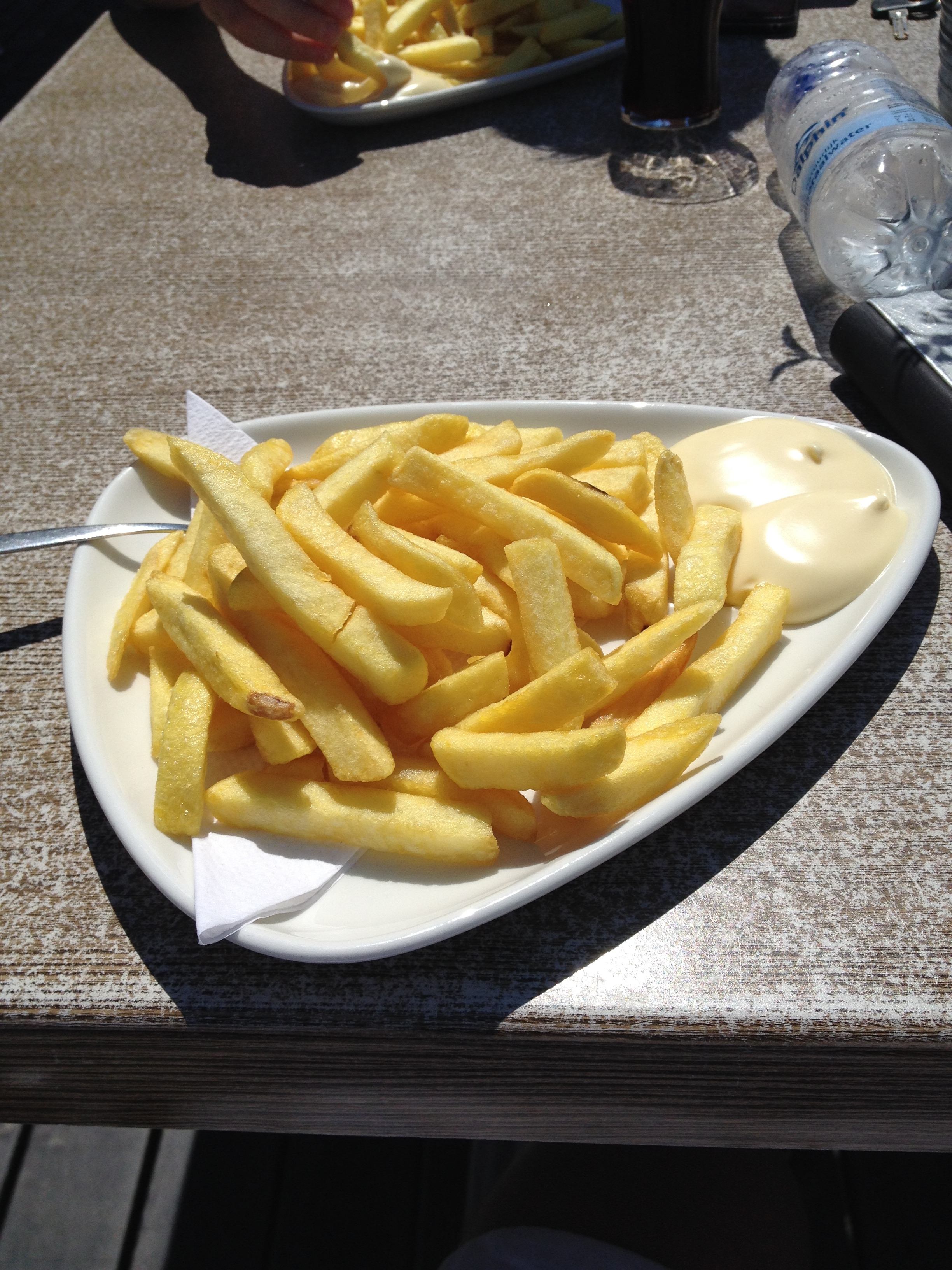 Ook het mooie weer, de zee en jeugdherinneringen aan vakanties op het eiland maken deze patat zo heerlijk