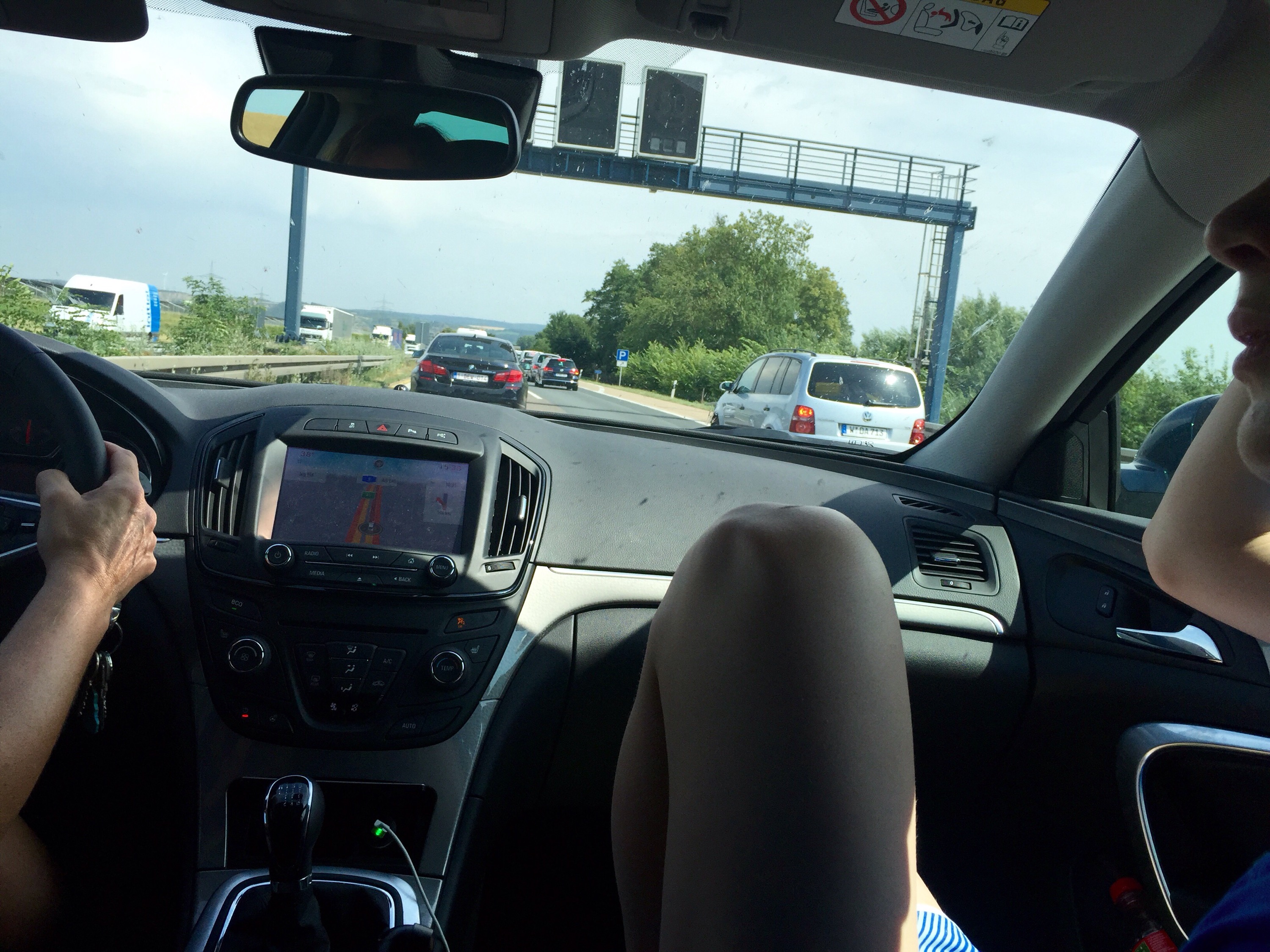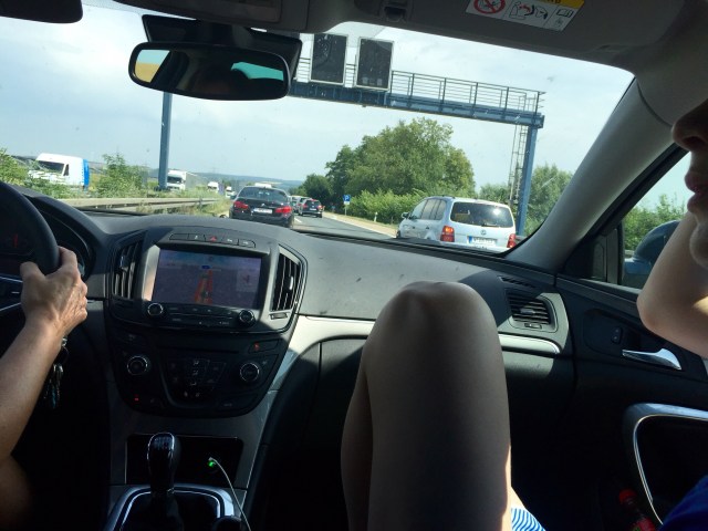 Van Keulen naar München een grote file. Om de paar kilometer een baustelle, soms met lichte activiteit, vaak verlaten. Hele stukken snelweg worden afgezet. Daar zijn onze Oosterburen niet kinderachtig in. Op het matrixbord staat 80. Waarom is volstrekt onduidelijk. Waarschijnlijk een sick Joke van een gefrustreerde wegwerker. Buiten is het 37 graden. Gelukkig hebben we de airco nog.